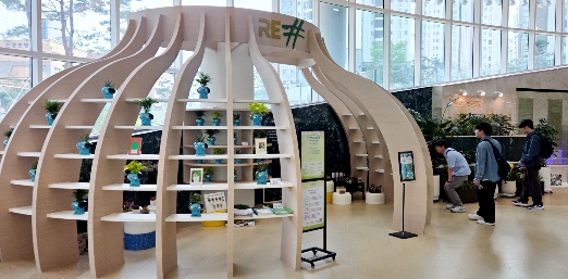 경기도서관 1층 돔형 전시장(RE#)에는 경기도 캐릭터 ‘봉공이’ 화분을 비롯해 경기도농업기술원이 개발한 다육식물 신품종과 생활정원이 전시된다.