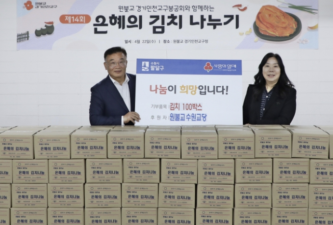 수원시 팔달구, 원불교 수원교당으로부터 김치 100박스 후원 받아...취약계층에 따뜻한 나눔 실천