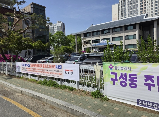 용인특례시가 민간임대주택 사업 투자 주의를 안내하는 홍보활동을 진행했다. 사진은 기흥구 구성동 주민센터 앞에 걸린 홍보 현수막