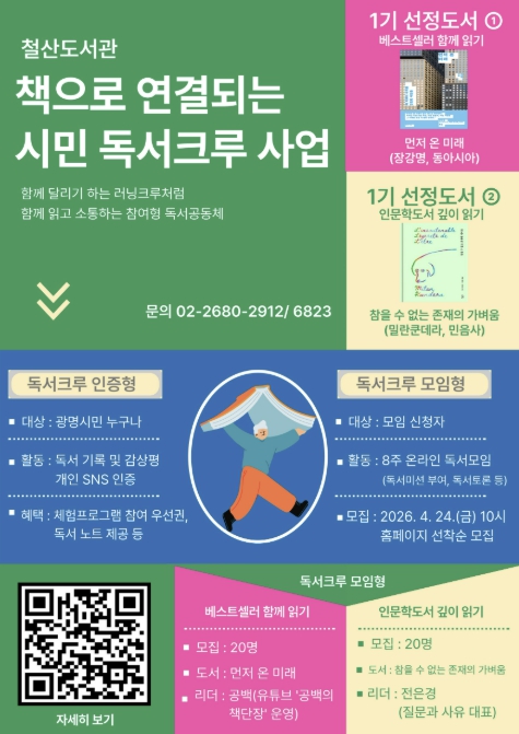 철산도서관 '책으로 연결되는 시민 독서크루 사업' 안내문