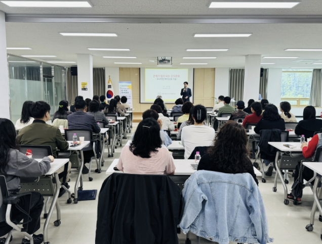 이번 교육은 복지소통꿈연구소 김헌 대표의 강의로 진행됐으며, ‘관계가 힘이 되는 조직문화 만들기’를 주제로 복지 현장에서의 효과적인 소통 중요성과 실천 방안을 다뤘다.