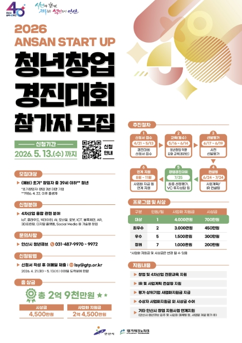 대회는 ‘ANSAN START UP’ 통합 브랜드 아래 추진되는 대표 청년창업 프로그램으로, 청년 창업가들의 아이디어를 실질적인 창업으로 연결하기 위해 마련됐다.