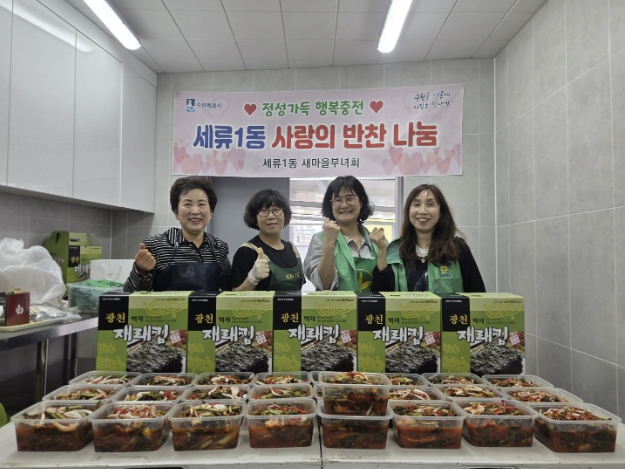 선병옥 세류1동장은 “항상 지역사회를 위해 봉사와 나눔을 실천해 주시는 새마을부녀회원들께 감사드린다”며, “이러한 따뜻한 나눔이 모여 더욱 살기 좋은 마을이 만들어지길 기대한다”고 말했다.