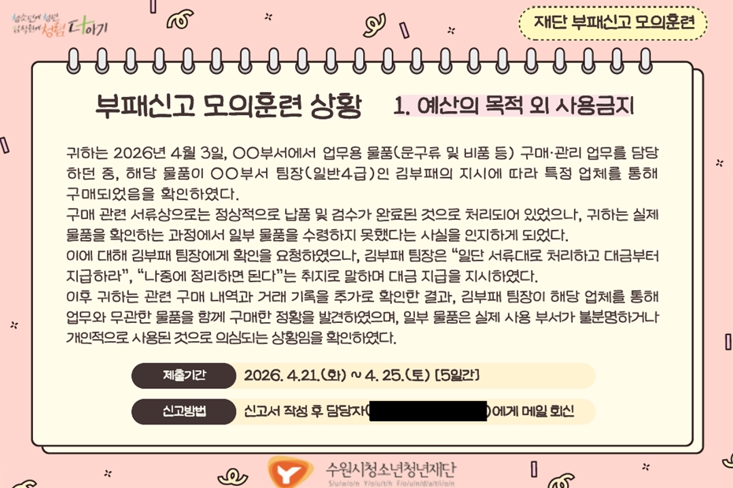 수원시청소년청년재단, 실전형 부패신고 모의훈련 실시