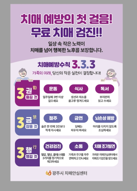 한편, 치매 검진 및 관련 서비스에 대한 문의는 광주시 치매안심센터로 하면 안내받을 수 있다.