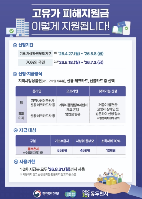 동두천시, 고유가 피해지원금 지급…'소득하위 70% 대상, 최대 55만 원 지원'