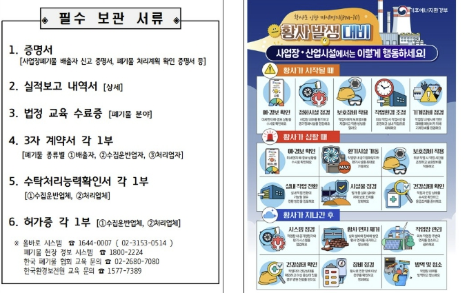 이번 홍보물에는 ▲미세먼지 저감을 위한 실천 수칙 ▲황사발생대비 사업장 행동요령 등이 수록됐다. 특히, 폐기물관련사업장에 대해 관련 서류를 상시 관리해야 하는 실무자들의 업무 편의를 고려해, 실무에 즉시 활용할 수 있는 ‘행정 지원 도구’로서의 기능을 강화하는데 중점을 뒀다.