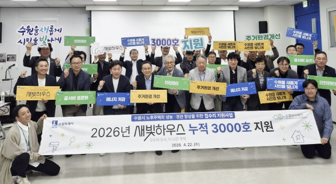 올해 안에 수원시가 오래된 저층주택의 집수리를 지원하는 새빛하우스가 3천호로 늘어난다. 수원시는 올해 지원 대상 904호를 추가해 올해 내에 누적 3천호의 집수리 지원을 완료할 예정이다. 2023년 첫 대상으로 305호가 선정된 이후 2024년 791호, 2025년 1003호에 이어 올해 904호를 선정해 총 3천3호의 낡고 낮은 집을 시민과 함께 고친다.