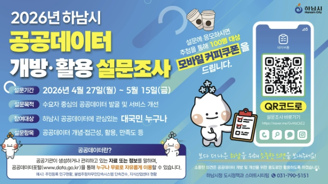 하남시, 2026 공공데이터 설문조사 실시… 시민 수요 반영 개방 확대