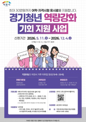 이천시, 미취업 청년 어학·자격시험 응시료 지원… 최대 30만 원까지