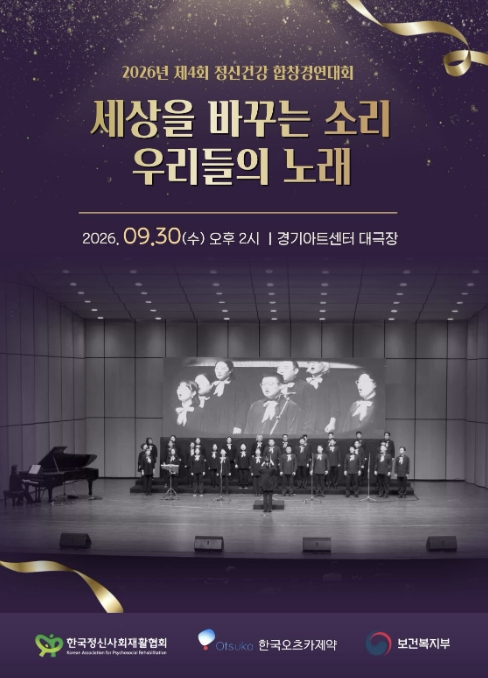 한국정신사회재활협회가 주최하고 한국오츠카제약이 후원하는 정신건강 합창경연대회는 음악을 통해 정신건강에 대한 사회적 인식을 개선하고, 회복과 재활의 의미를 나누기 위해 마련됐다.
