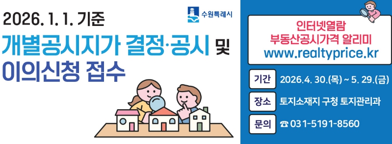수원시 영통구, 2026. 1. 1. 기준 개별공시지가 결정·공시 및 이의신청 접수 시작