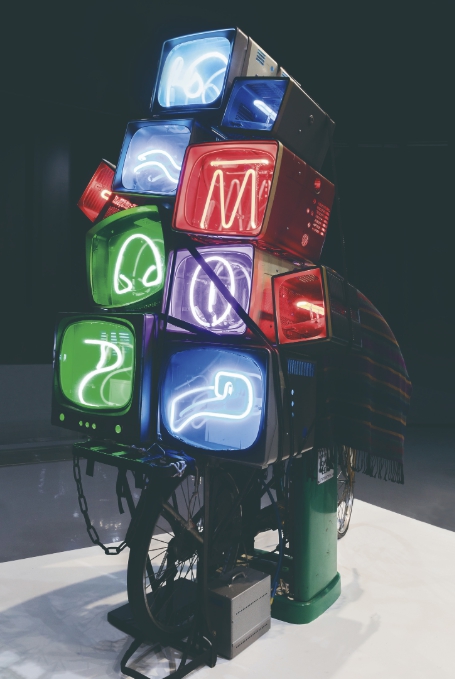 전시의 시작은 ‘우주는 끊임없이 변화하는 세계’라는 백남준의 사유에서 출발한다. 이 공간은 관계 속에서 지속적으로 생성되고 변형되는 우주를 감각적으로 경험하도록 구성된다. 실험적 작업을 이어온 예술공동체 진달래&박우혁의 '코스믹 프래그먼트(Cosmic Fragments)’(2026)는 서로 다른 색과 형태의 평면이 겹쳐지며, 다층적인 우주를 만들어내는 설치 작업이다. 별의 파편처럼 흩어진 요소들은 은하수처럼 공간 전체로 확장되고, 관객의 움직임에 반응하며 끊임없이 변화를 만들어낸다. 관객은 그 사이를 지나며 단순한 관람자를 넘어 변화하는 우주의 일부로 자연스럽게 편입된다. 이와 함께 선보이는 백남준의 '칭기즈 칸의 복권’(1993)은 텔레비전을 매개로 세계를 연결하려는 사유와 유목적 이동의 이미지를 담은 작품이다. 이번 전시에서는 이를 우주를 횡단한 뒤 새로운 세계로 나아가는 상상적 여행자의 서사로 확장해 제시한다.