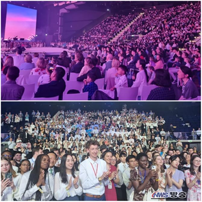 À̳¯ ¼º·É°¸²Àý Ưº°¿¹¹è ÈÄ 1,000¿© ¸íÀÇ À¯·´¡¤Áßµ¿ û³âÇлýµéÀº ´Ù½Ã ÇÑÀÚ¸®¿¡ ¸ð¿© ¡®¹Ì·¡¼¼´ë¸¦ Ã¥ÀÓÁö°í ³ª°¡¾ß ÇÒ ÀþÀº û³âÇлýµé·Î¼, ÆòÈ¿Í »ç¶ûÀ» ½ÇõÇÏ¸ç ¼¼»ó¿¡ ºû°ú ¼Ò±ÝÀÇ ¿ªÇÒÀ» ´ÙÇϰڴ١¯´Â ÀÇÁö¸¦ ´ÙÁ³´Ù.