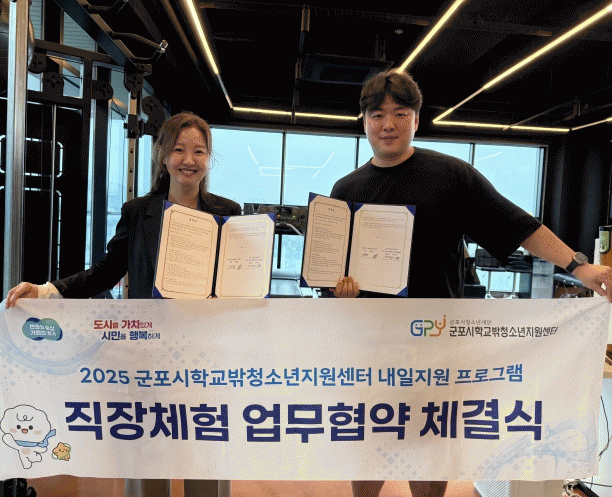[NWS¹æ¼Û=Çѽ¸ñ ±âÀÚ]±ºÆ÷½Ãû¼Ò³âÀç´Ü(´ëÇ¥ÀÌ»ç ±è´öÈñ), ±ºÆ÷½ÃÇб³¹Ûû¼Ò³âÁö¿ø¼¾ÅÍ(¼¾ÅÍÀå °¿¬¹Ì)´Â Á¶Á÷ ¿î¿µ ¹× ¸¶ÄÉÆÃ¿¡ °ü½É ÀÖ´Â Çб³ ¹Û û¼Ò³âÀÇ Áø·Î Ž»ö°ú ÇöÀå °æÇè È®´ë¸¦ À§ÇØ ³»¼Å³Î±¹°¡´ëÇ¥PT¼¾ÅÍ(´ëÇ¥ ±èÅÿë)¿Í Á÷ÀåüÇè ¾÷¹«Çù¾àÀ» ü°áÇß´Ù°í ¹àÇû´Ù.