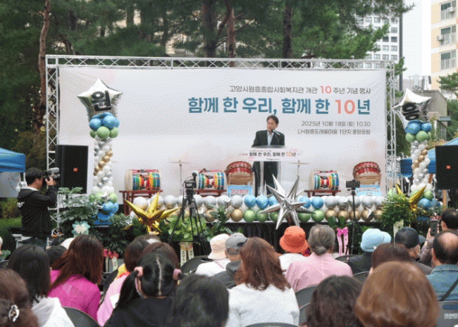 À̹ø Çà»ç´Â °í¾ç½Ã¿øÈïÁ¾ÇÕ»çȸº¹Áö°ü °³°ü 10ÁÖ³âÀ» ±â³äÇϸç, Áö¿ª°ú ÇÔ²²ÇÑ Áö³ ½Ã°£ÀÇ Àǹ̸¦ µÇ»õ±â°í ¾ÕÀ¸·ÎÀÇ 10³âÀ» ÇâÇÑ »õ·Î¿î ºñÀüÀ» ´ÙÁö´Â ÀÚ¸®·Î ¸¶¹«¸®µÆ´Ù.