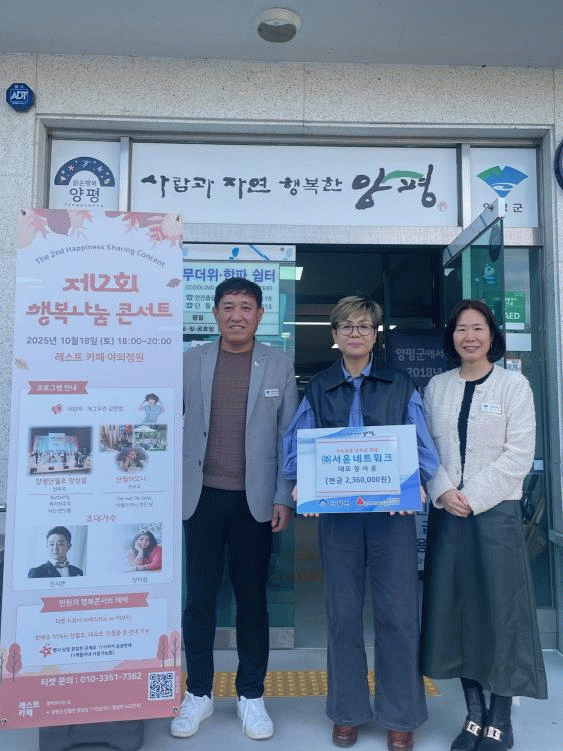 [NWS¹æ¼Û=Çѽ¸ñ ±âÀÚ]¾çÆò±º ´Ü¿ù¸éÀº Áö³ 20ÀÏ, Á¤º¸Åë½Å°ø»ç Àü¹®±â¾÷ ¢ß¼À±³×Æ®¿öÅ©ÀÇ Àå¼À± ´ëÇ¥°¡ ¡®Á¦2ȸ Çູ³ª´® ÄܼƮ¡¯¸¦ ÅëÇØ ¸ðÀº ¼öÀÍ±Ý 236¸¸ ¿øÀ» ´Ü¿ù¸é»ç¹«¼Ò¿¡ ±âºÎÇß´Ù°í ¹àÇû´Ù.