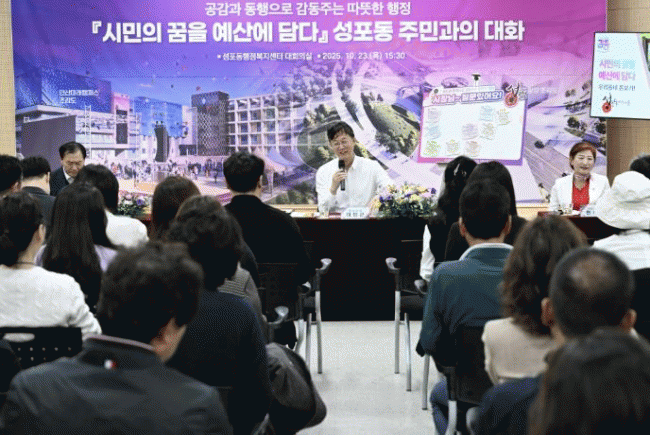 ¾È»ê½Ã´Â À̳¯ ¼ºÆ÷µ¿ ÇàÁ¤º¹Áö¼¾ÅÍ¿¡¼ ¡®½Ã¹ÎÀÇ ²ÞÀ» ¿¹»ê¿¡ ´ã´Ù¡¯¸¦ ÁÖÁ¦·Î ÁֹΰúÀÇ ´ëȸ¦ °³ÃÖÇϰí, Áö¿ª Çö¾È ÇØ°áÀ» À§ÇÑ ¼ÒÅëÀÇ ½Ã°£À» °¡Á³´Ù. ¼ºÆ÷µ¿ Áֹΰú Á÷´É´Üü °ü°èÀÚ µî 80¿© ¸íÀÌ Âü¼®ÇÑ À̳¯ Çà»ç¿¡¼ ÀÌ ½ÃÀåÀº ÁÖ¿ä ½ÃÁ¤ ¿î¿µ ¹æÇâ°ú µ¿ Çö¾È »ç¾÷À» ¼³¸íÇϰí, ÁֹΠ°ÇÀÇ »çÇ׿¡ ´ëÇØ ³íÀÇÇß´Ù.