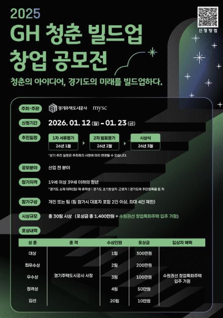 | GH, û³â â¾÷ Ȱ¼ºÈ À§ÇÑ '2025 GH ûÃá ºôµå¾÷ â¾÷ °ø¸ðÀü' ½Ç½Ã 19¼¼ ÀÌ»ó 39¼¼ ÀÌÇÏ °æ±âµµ û³â¡¤Ãʱââ¾÷ÀÚ µî ´ë»ó =Çѽ¸ñ ±âÀÚ |