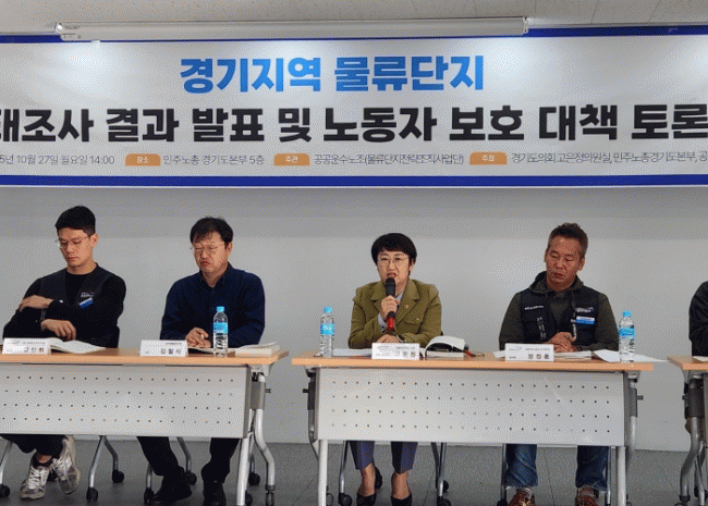 ÇÑÆí, ¡®°æ±âÁö¿ª ¹°·ù´ÜÁö ½ÇÅÂ¿Í °³¼± °úÁ¦ Åä·Ðȸ¡¯´Â ¹ÎÁÖ³ëÃÑ °æ±âµµº»ºÎ¿Í °ø°ø¿î¼ö³ëÁ¶ °æ±âÁö¿ªº»ÁÖ¿¡¼ ÁÖÃÖÇßÀ¸¸ç, »çȸ°ø°ø¿¬±¸¿øÀÌ 9¿ù¿¡ ¹ß°£ÇÑ ¡®°æ±âÁö¿ª ¹°·ù´ÜÁö ³ëµ¿½ÇÅÂÁ¶»ç¡¯ º¸°í¼¸¦ ¹ÙÅÁÀ¸·Î ÁÖ ¹ßÁ¦¿Í ÁöÁ¤Åä·Ð, Ç÷ξî ÁúÀÇÀÀ´ä ¼øÀ¸·Î ÁøÇàµÆ´Ù.