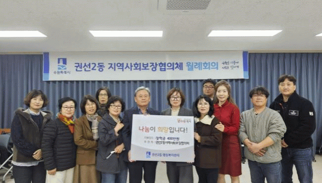 | ¼ö¿ø½Ã ±Ç¼±±¸ ±Ç¼±2µ¿ Áö¿ª»çȸº¸ÀåÇùÀÇü, »ç¶ûÀÇ ÀåÇÐ±Ý Àü´Þ½Ä °³ÃÖ =Çѽ¸ñ ±âÀÚ |