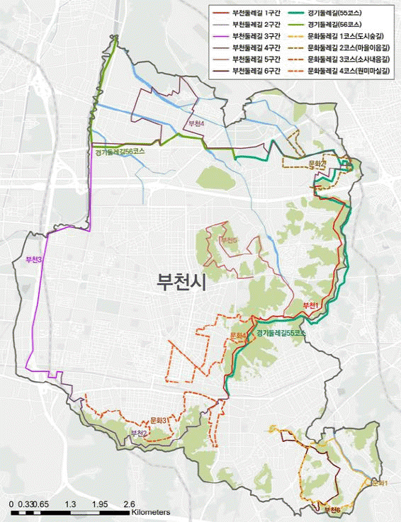 ºÎõ½Ã ³» µÑ·¹±æÀº ÃÑ 6°³ ÄÚ½º, ÃѰŸ® 48kmÀÇ ºÎõ µÑ·¹±æ°ú ÃÑ 4°³ ÄÚ½º, ÃѰŸ® 31kmÀÇ ºÎõ ¹®È µÑ·¹±æ·Î ±¸ºÐµÈ´Ù. ºÎõ µÑ·¹±æÀº ºÎõ½Ã °æ°è¸¦ µû¶ó ÇÏõ°ú »ê, °ø¿ø µî ÀÚ¿¬À» ¿¬°áÇÏ¿© Á¶¼ºÇß°í ºÎõ ¹®È µÑ·¹±æÀº ºÎõ½ÃÀÇ »ýÅÂ, ¿ª»ç, ¹®ÈÀÚ¿øÀ» µµ½É ³»¿¡¼ ü°èÀûÀ¸·Î ¿¬°è?Ȱ¿ëÇϰí Áö¿ª ³» ¹®È ÇâÀ¯ ±âȸ¸¦ ÃËÁøÇϰíÀÚ Á¶¼ºµÆ´Ù.