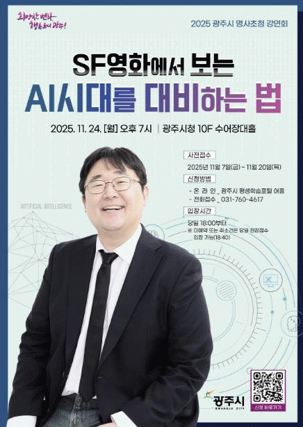 À̹ø °¿¬È¸¿¡´Â ¡®±è¿µÃ¶ÀÇ ÆÄ¿öFM¡¯, ¡®½É¾ß±«´ãȸ¡¯ µî ´Ù¾çÇÑ ¹æ¼Û ÇÁ·Î±×·¥¿¡¼ Ȱ¾à ÁßÀÎ °ûÀç½Ä ±³¼ö°¡ ¿¬»ç·Î ³ª¼ ¡®SF¿µÈ¿¡¼ º¸´Â AI½Ã´ë¸¦ ´ëºñÇÏ´Â ¹ý¡¯À» ÁÖÁ¦·Î °¿¬À» ÁøÇàÇÑ´Ù.