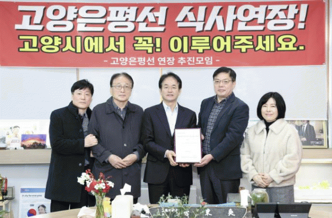 [NWS¹æ¼Û=Çѽ¸ñ ±âÀÚ]À̵¿È¯ °í¾ç½ÃÀåÀÌ¡®°í¾çÀºÆò¼± ÁöÇÏö ¿¬Àå ÃßÁø ¸ðÀÓ¡¯À¸·ÎºÎÅÍ °í¾çÀºÆò¼± ÀÏ»ê ¿¬ÀåÀÇ ¿°¿øÀ» ´ãÀº ÁֹΠ¼­¸íºÎ¸¦ Àü´Þ¹Þ¾Ò´Ù.