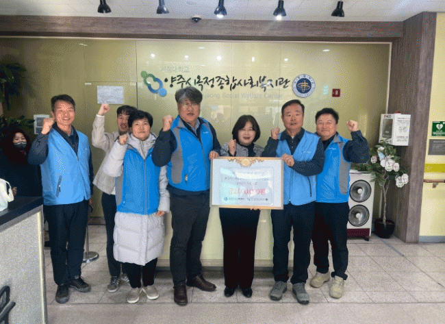 [NWS¹æ¼Û=Çѽ¸ñ ±âÀÚ]¾çÁֽÿÁÁ¤Á¾ÇÕ»çȸº¹Áö°üÀº Çѱ¹°¡½º±â¼ú°ø»ç ¼¿ïÁö»ç ¾çÁÖ»ç¾÷¼Ò·ÎºÎÅÍ °Ü¿ïö ±èÄ¡ ³ª´®À» À§ÇÑ ÈÄ¿ø±Ý Àü´Þ½ÄÀ» ÁøÇàÇß´Ù.