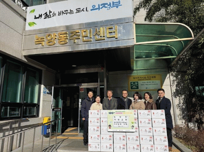 [NWS¹æ¼Û=Çѽ¸ñ ±âÀÚ]ÀÇÁ¤ºÎ½Ã ³ì¾çµ¿Áֹμ¾ÅÍ´Â 11¿ù 21ÀÏ °¡¼º±³È¸°¡ µµ¿òÀÌ ÇÊ¿äÇÑ ÁÖ¹ÎÀ» À§ÇØ ±èÄ¡(300kg)¸¦ ±âŹÇÏ¸ç ¡®100Àϰ£ »ç¶û¸±·¹ÀÌ ¹èÅÏ Àձ⡯¿¡ µ¿ÂüÇß´Ù°í ¹àÇû´Ù.