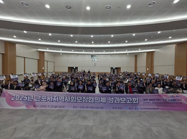 [NWS¹æ¼Û=Çѽ¸ñ ±âÀÚ]±ºÆ÷½Ã´Â 11¿ù 21ÀÏ ¿ÀÈÄ 2½Ã, ±ºÆ÷½Ãû ´ëȸÀǽǿ¡¼ ¡®2025³â ±ºÆ÷½ÃÁö¿ª»çȸ º¸ÀåÇùÀÇü ¼º°úº¸°íȸ¡¯¸¦ °³ÃÖÇß´Ù.