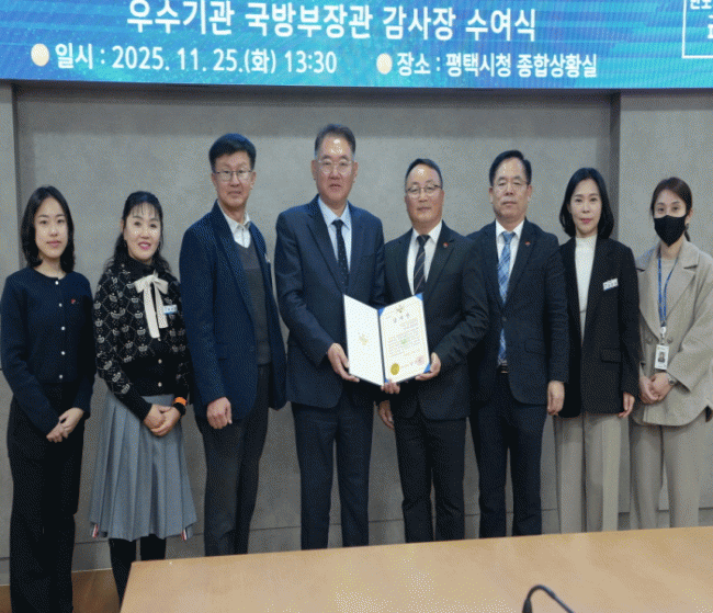 [NWS¹æ¼Û=Çѽ¸ñ ±âÀÚ]ÆòÅýð¡ 6.25 Àü»çÀÚ À¯°¡Á· ½Ã·á äÃë »ç¾÷¿¡ Àû±Ø ÇùÁ¶ÇÑ °ø·Î·Î ±¹¹æºÎÀå°ü °¨»çÀåÀ» ¹Þ¾Ò´Ù.