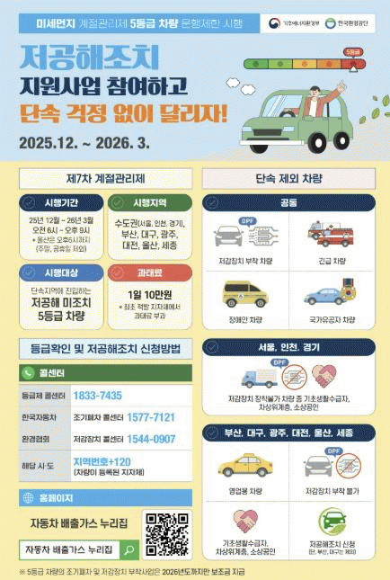 | ±¸¸®½Ã, ³»³â 3¿ù±îÁö ¹èÃâ°¡½º 5µî±Þ Â÷·® ¿îÇà Á¦ÇÑ ½ÃÇà Á¦7Â÷ °èÀý °ü¸®Á¦ ÃßÁøÀ¸·Î ´ë±âÁú °³¼± ¹× ½Ã¹Î °Ç° º¸È£ =Çѽ¸ñ ±âÀÚ |