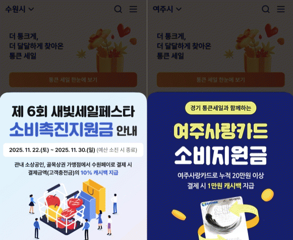 ¸ÕÀú °¡Æò±º, ±¤¸í½Ã´Â ÅëÅ« ¼¼ÀÏ Çà»ç ±â°£ÀÎ 11¿ù 30ÀϱîÁö Áö¿ªÈ­Æó °áÁ¦ ½Ã °áÁ¦ ±Ý¾×ÀÇ 5% ij½Ã¹é ÇýÅÃÀ» Á¦°øÇÑ´Ù. ¶Ç °í¾ç½Ã, ³²¾çÁÖ½Ã, ¼ö¿ø½Ã, ¿¬Ãµ±º µîµµ ÅëÅ« ¼¼ÀÏ Çà»ç ±â°£À» ³Ñ¾î ´ÙÀ½ ´Þ 31ÀϱîÁö Áö¿ªÈ­Æó °áÁ¦ ½Ã 5% ij½Ã¹éÀ» Á¦°øÇÑ´Ù. ƯÈ÷ ¼ö¿ø½Ã´Â ÅëÅ« ¼¼ÀÏ ±â°£¿¡ ¸ÂÃç ÁøÇàÇÏ´Â ¡®»õºû¼¼ÀÏÆä½ºÅ¸ ¼ö¿ø¡¯ ÀÏȯÀ¸·Î ±âÁ¸ 5% ij½Ã¹é¿¡ ´õÇØ 10% Ãß°¡ ij½Ã¹éÀ» Áö±ÞÇØ µµ¹ÎµéÀº ¼ö¿ø¿¡¼­ Áö¿ªÈ­Æó »ç¿ë ½Ã ÃÑ 15%ÀÇ Ä³½Ã¹é ÇýÅÃÀ» ¹ÞÀ» ¼ö ÀÖ´Ù.