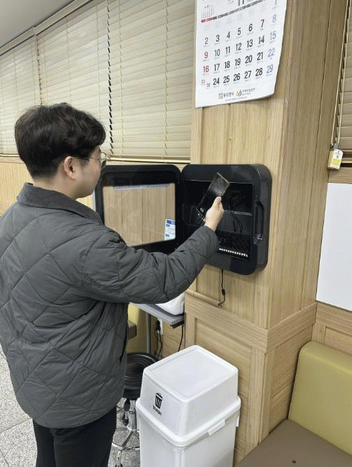 [NWS¹æ¼Û=Çѽ¸ñ ±âÀÚ]µ¿µÎõ½Ã ºÒÇöµ¿ ÇàÁ¤º¹Áö¼¾ÅÍ´Â ÀÏ»ó ¼Ó ¼¼±Õ °¨¿° ¹æÁö¿Í ½Ã¹Î ÆíÀǼº Á¦°í¸¦ À§ÇØ ¹Î¿ø½Ç¿¡ ¡®ÈÞ´ëÆù »ì±Õ ÃæÀü±â¡¯¸¦ ¼³Ä¡Çß´Ù°í 1ÀÏ ¹àÇû´Ù.