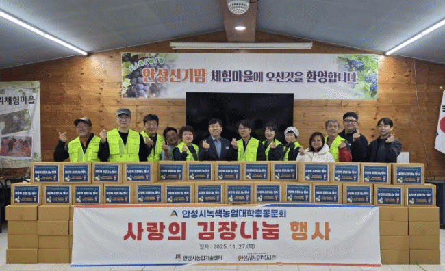 [NWS¹æ¼Û=Çѽ¸ñ ±âÀÚ]¾È¼º½Ã³ëÀκ¹Áö°üÀº ¾È¼º½Ã³ì»ö³ó¾÷´ëÇÐ Ãѵ¿¹®È¸·ÎºÎÅÍ Áö¿ª»çȸ ¾î¸£½ÅµéÀ» À§ÇÑ »ç¶ûÀÇ ±èÀ峪´® ¹é±èÄ¡ 200Æ÷±â¸¦ ÈÄ¿ø¹Þ¾Ò´Ù°í 28ÀÏ ¹àÇû´Ù.