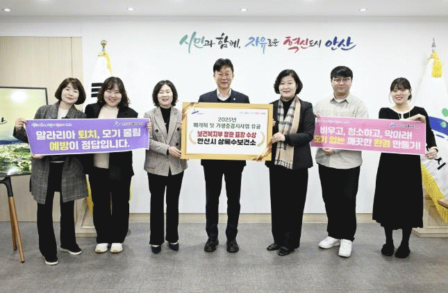 [NWS¹æ¼Û=Çѽ¸ñ ±âÀÚ]¾È»ê½Ã´Â »ó·Ï¼öº¸°Ç¼Ò°¡ ¡®2025³â ¸Å°³Ã¼ ¹× ±â»ýÃæ °¨½Ã»ç¾÷ À¯°ø¡¯ ºÐ¾ß¿¡¼­ º¸°Çº¹ÁöºÎ Àå°ü ǥâÀ» ¼ö»óÇß´Ù°í 4ÀÏ ¹àÇû´Ù.