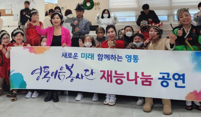 [NWS¹æ¼Û=Çѽ¸ñ ±âÀÚ]¼ö¿ø½Ã ¿µÅ뱸 ÁÖ¹ÎÀÚÄ¡¼¾ÅÍ µ¿¾Æ¸®(ÇÁ·Î±×·¥) °ø¿¬ÆÀÀ¸·Î ±¸¼ºµÈ¡®¿µÅëÀÌÀ½ºÀ»ç´Ü¡¯Àº Áö³ 4ÀÏ, ¸ÁÆ÷µ¿ ¼ÒÀçÀÇ ÇÑ ³ëÀÎÁÖ°£º¸È£¼¾Å͸¦ ¹æ¹®ÇÏ¿© ¾î¸£½ÅµéÀ» ´ë»óÀ¸·Î µû¶æÇÑ Àç´É³ª´® °ø¿¬À» ÆîÃÆ´Ù.