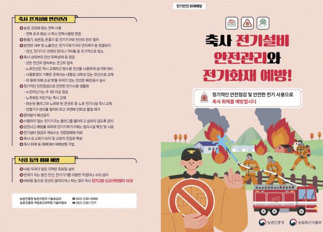 µµ´Â ³óÀå±Ô¸ð¿¡ ¸Â´Â Àü·Â»ç¿ë, Ãà»ç ³»¿ÜºÎÀÇ Àü¼± ÇǺ¹»óÅ Á¡°Ë, ¸ÕÁö³ª °Å¹ÌÁÙ Á¦°Å, Ãà»ç Àü±â¼³ºñ ¹× Àü±â±â±¸ÀÇ Á¤±âÀûÀÎ Á¡°Ë ½Ç½Ã¿Í ÇÔ²² °¡ÃàÀçÇØº¸Çè °¡ÀÔ ½Ã °¡Ãà°ú Ãà»ç±îÁö °¡ÀÔÇϵµ·Ï ¾È³»Çϰí ÀÖ´Ù.