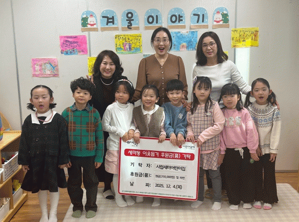 [NWS¹æ¼Û=Çѽ¸ñ ±âÀÚ]¿À»ê½Ã ¼¼¸¶µ¿Àº Áö³ 4ÀÏ ¼¼¸¶µ¿ ¼ÒÀç ½Ã¸³¼¼¸¶¾î¸°ÀÌÁýÀÌ ¾Æ³ª¹Ù´Ù Çà»ç ¼öÀÍ±Ý 25¸¸ ¿ø°ú ¶ó¸éÀ» °ü³» Ãë¾à°èÃþÀ» À§ÇØ ±âŹÇß´Ù°í ¹àÇû´Ù.