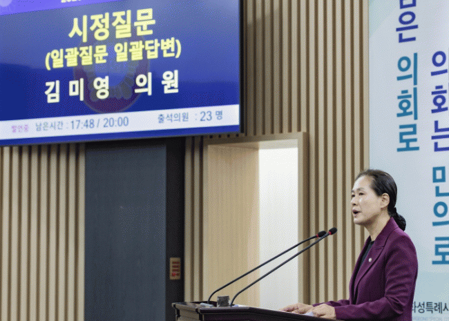 | ȼºÆ¯·Ê½ÃÀÇȸ ±è¹Ì¿µ ÀÇ¿ø, ½ÃÁ¤Áú¹® ¡°È¼ºÆ¯·Ê½Ã ¡®1³â ¹Ì¸¸ Àüº¸¡¯ ¹Î¼±8±â µé¾î 2¹è ±ÞÁõ...ÇàÁ¤ Àü¹®¼º À§±â¡± =Çѽ¸ñ ±âÀÚ |