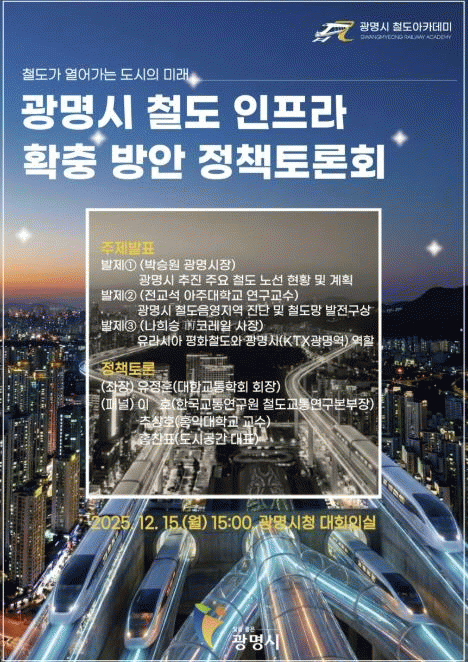 À̹ø Åä·Ðȸ´Â ½Åõ-ÇϾÈ-½Å¸²¼± ÃßÁø ÇöȲÀ» ºñ·ÔÇØ ±¤¸í½ÃÀÇ Ã¶µµ Á¢±Ù¼º Áø´Ü, öµµ À½¿µÁö¿ª °³¼± ¹æÇâ, KTX±¤¸í¿ªÀÇ ¹Ì·¡ ¿ªÇÒ µî ±¤¸í½Ã öµµ Á¤Ã¥ÀÇ ÁÖ¿ä °úÁ¦¸¦ Á¾ÇÕÀûÀ¸·Î Á¡°ËÇϱâ À§ÇØ ¸¶·ÃÇß´Ù.