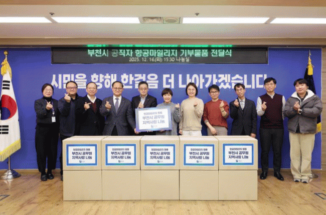 [NWS¹æ¼Û=Çѽ¸ñ ±âÀÚ]ºÎõ½Ã´Â Áö³ 16ÀÏ Á÷¿øµéÀÌ º¸À¯ÇÑ Ç×°ø¸¶Àϸ®Áö¸¦ Ȱ¿ëÇØ ¹°Ç°À» ±¸¸ÅÇϰí À̸¦ Áö¿ª º¹Áö½Ã¼³¿¡ ±âºÎÇÏ´Â ¿¬¸» ³ª´® Çà»ç¸¦ ¿¾ú´Ù. À̹ø Çà»ç´Â °øÀû Ç×°ø¸¶Àϸ®Áö¸¦ »çȸ°øÇå Ȱµ¿¿¡ Ȱ¿ëÇϰí, ¿¬¸»À» ¸Â¾Æ Áö¿ª»çȸ ³ª´® ¹®È È®»ê¿¡ ±â¿©Çϱâ À§ÇØ ÃßÁøµÆ´Ù.