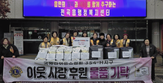 [NWS¹æ¼Û=Çѽ¸ñ ±âÀÚ]±¹Á¦¶óÀ̿½ºÇùȸ 354-HÁö±¸ ¿¬Ãµ¿Â°ñ ¶óÀ̿½ºÅ¬·´Àº Áö³ 16ÀÏ ¾î·Á¿î ÀÌ¿ôÀ» µ½±â À§ÇØ ¹é¹Ì 300kg ¹× ÀÌºÒ 20並 °æ±â »çȸº¹Áö°øµ¿¸ð±Ýȸ¸¦ ÅëÇØ Àü°îÀ¾ÇàÁ¤º¹Áö¼¾ÅÍ¿¡ ±âŹÇß´Ù.