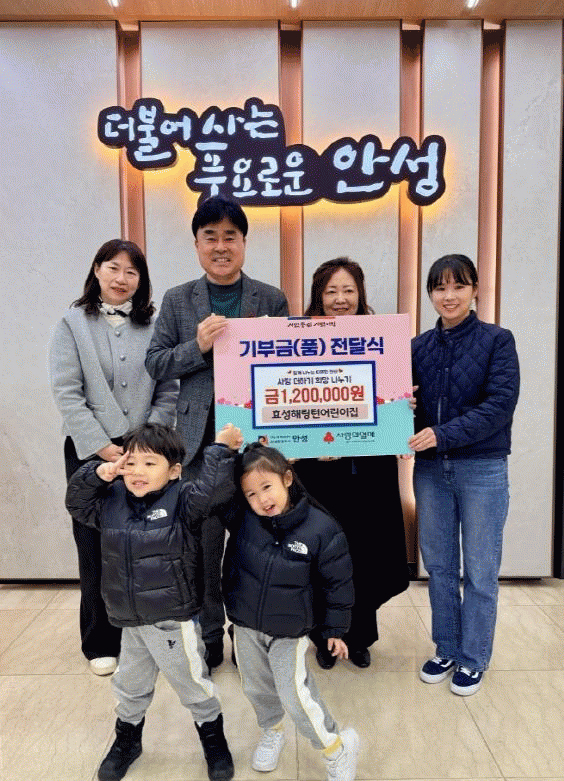 ±¹°ø¸³°øµµÈ¿¼ºÇظµÅϾÀÌÁýÀº ¾È¼º½Ã °øµµÀ¾¿¡ ¼ÒÀçÇÑ ¿µÀ¯¾Æ º¸À°½Ã¼³·Î Áö¿ª»çȸ Âü¿©¿Í ³ª´® ½ÇõÀÇ ÀÏȯÀ¸·Î ´Ù¾çÇÑ ±â°ü¿¡ ²ÙÁØÈ÷ ±âºÎ¸¦ À̾î¿À°í ÀÖ´Ù. ¾î¸°ÀÌÁýÀº À̹ø¿¡µµ ź¼ÒÁ߸³ Çø®¸¶ÄÏ ¡®¾²·¹±âµµ ´Ù½Ã ¾µ ¼ö ÀÖ¾î¿ä!¡¯ Çà»ç¸¦ ÅëÇØ ¸¶·ÃÇÑ ¼öÀÍ±Ý 120¸¸ ¿øÀ» Áö¿ª»çȸ¸¦ À§ÇØ Àü´ÞÇϸç, ¾ÆÀ̵é°ú ÇÔ²² ³ª´®ÀÇ °¡Ä¡¸¦ ½ÇõÇß´Ù.