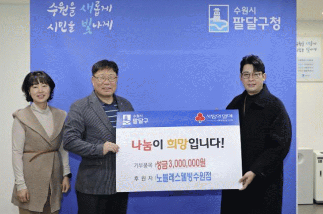 [NWS¹æ¼Û=Çѽ¸ñ ±âÀÚ]¼ö¿ø½Ã ÆÈ´Þ±¸Àº Áö³ 17ÀÏ, ³ëºí·¹½ºÀ£ºù ¼ö¿øÁ¡(´ëÇ¥ ±èÇö¼ö)¿¡¼ ÆÈ´Þ±¸Ã»À» ¹æ¹®ÇÏ¿© °ü³» Àú¼ÒµæÃþÀ» À§ÇÑ ¼º±ÝÀ» Àü´ÞÇß´Ù°í ¹àÇû´Ù.