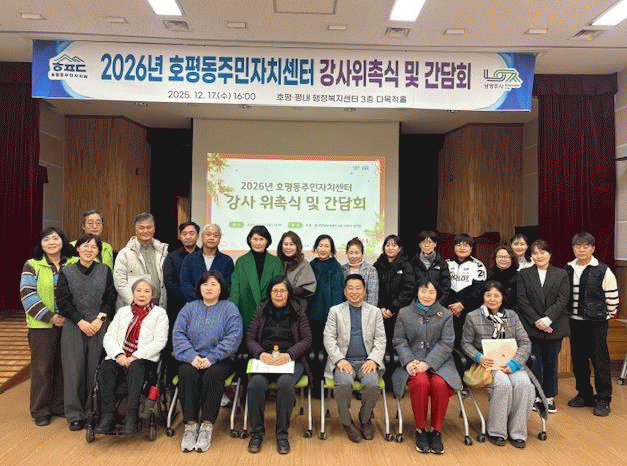 [NWS¹æ¼Û=Çѽ¸ñ ±âÀÚ]³²¾çÁֽô Áö³­ 17ÀÏ È£Æòµ¿ ÁÖ¹ÎÀÚġȸ°¡ È£ÆòÆò³»ÇàÁ¤º¹Áö¼¾ÅÍ 3Ãþ ´Ù¸ñÀûȦ¿¡¼­ ¡®2026³â È£Æòµ¿ ÁÖ¹ÎÀÚÄ¡¼¾ÅÍ °­»ç À§ÃË½Ä ¹× °£´ãȸ¡¯¸¦ ½Ç½ÃÇß´Ù°í ¹àÇû´Ù.