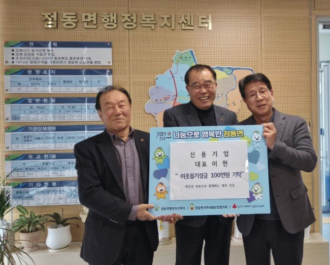 [NWS¹æ¼Û=Çѽ¸ñ ±âÀÚ]¿©Áֽÿ¡ À§Ä¡ÇÑ ½Å¿ë±â¾÷ÀÇ ÀÌÇö ´ëÇ¥°¡ ¿¬¸»¿¬½Ã¸¦ ¸Â¾Æ ¾î·Á¿î ÀÌ¿ôÀ» µ½±â À§ÇÑ ¼º±Ý 100¸¸ ¿øÀ» ±âŹÇÏ¸ç µû¶æÇÑ ³ª´®À» ½ÇõÇß´Ù.