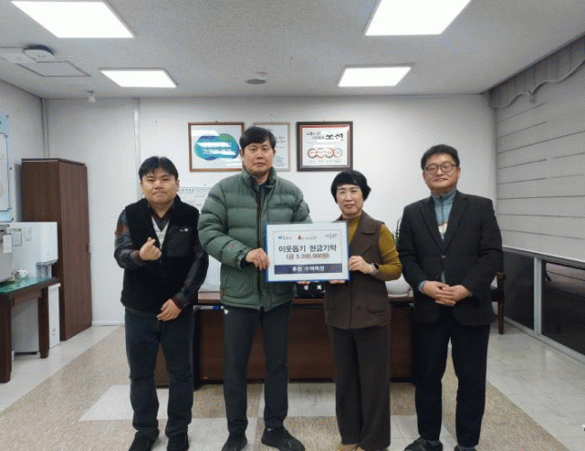 [NWS¹æ¼Û=Çѽ¸ñ ±âÀÚ]Æ÷õ½Ã ¿µÁ߸é ÇàÁ¤º¹Áö¼¾ÅÍ´Â Áö³ 17ÀÏ °ü³» ¼ÒÀç ¼öÅøñÀåÀÌ Áö¿ªÀÇ ¾î·Á¿î ÀÌ¿ôÀ» µ½±â À§ÇØ ¼º±Ý 500¸¸ ¿øÀ» ±âŹÇß´Ù°í ¹àÇû´Ù.
