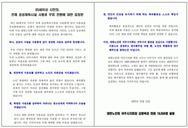 ¿©Áֽô ÀÌ·¯ÇÑ ³ëÀÎȸÀÇ ÀÚ¹ßÀûÀ̰í Ã¥ÀÓ ÀÖ´Â ÀÔÀåÀ» Á¸ÁßÇϸç, °ø°øÃ¼À°½Ã¼³ ¿î¿µÀÇ Áö¼Ó°¡´É¼º°ú ¼¼´ë °£ ÇüÆò¼ºÀ» °í·ÁÇÒ ¶§ ÇöÇà Á¶·Ê À¯Áö°¡ ¹Ù¶÷Á÷ÇÏ´Ù°í ÆÇ´ÜÇß´Ù.